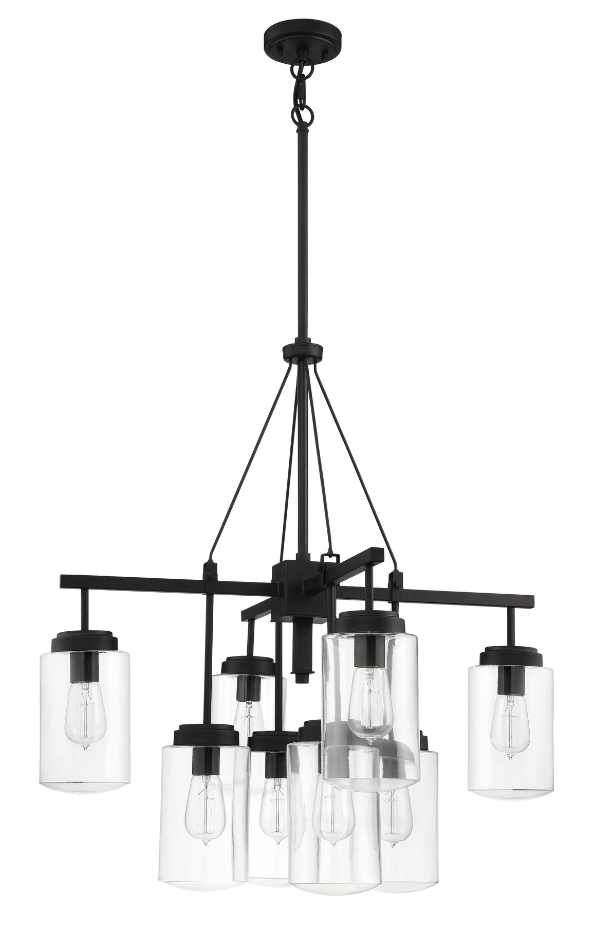The Crosspoint - 52128-ESP Outdoor Chandelier in Espresso is a perfect blend of durability and elegance, designed to enhance both indoor and outdoor spaces. Featuring a robust structure with sealed clear glass canisters, this chandelier requires eight medium base A19 bulbs with a maximum wattage of 60W (bulbs not included). It measures 30.25 inches in width and depth, and stands 32.38 inches tall, making a bold statement in any setting. The chandelier is wet rated, perfect for exposed areas, and includes 3 downrods measuring 12 inches and 1 downrod measuring 6 inches. With a leadwire length of 78 inches, this fixture provides flexibility in installation, and comes with a 1-year limited warranty for peace of mind.