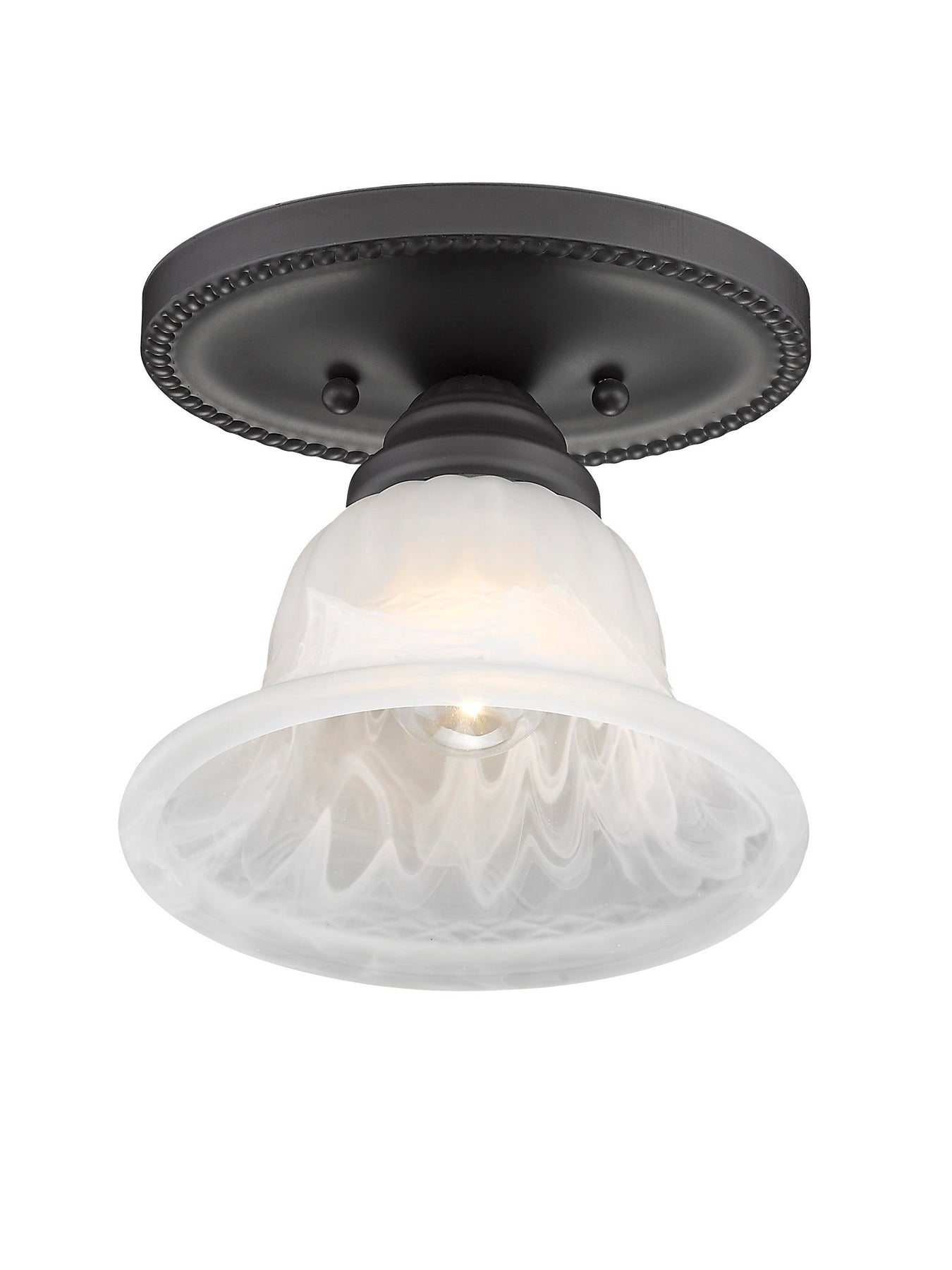 The 1530-07 Edgemont Ceiling Mount fixture is a stylish addition to any traditional decor. Featuring a beautiful white alabaster glass shade, this fixture enhances the warmth of a space while providing ample light with its 100W maximum capacity, using a medium base bulb (not included). Measuring 6 inches in height and with a 7-inch diameter canopy, it fits seamlessly in various locations. The stunning bronze finish adds an elegant touch, and its design is suitable for damp locations, making it versatile for hallways or baths.