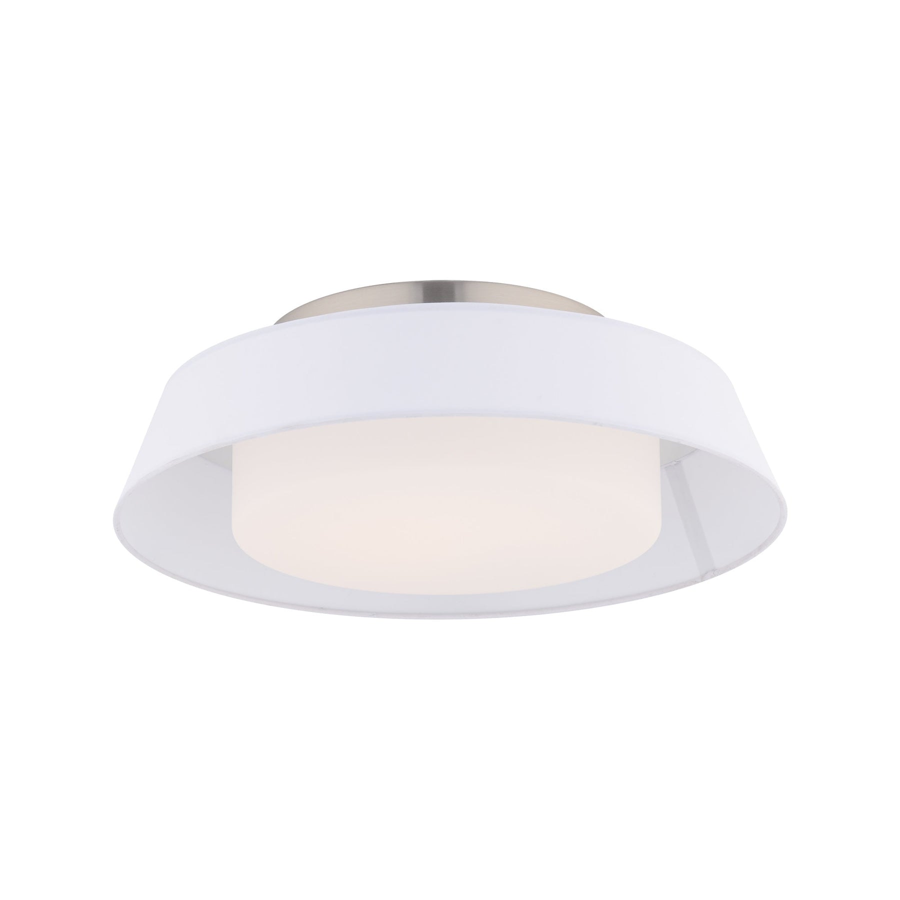 Chapeau 16in LED Flush Mount 3500K in White. A fabric shade caps a white, etched opal diffuser, bringing timeless elegance to rooms graced with its presence. Featuring aluminum construction, a fabric shade, and glass diffuser Chapeau damp location listed - it can be used indoor or covered outdoor areas Equipped with a 120V AC input LED driver that is concealed within the canopy for easy installation over a standard or pancake junction box. Smooth and continuous dimming with an electronic low voltage (ELV) or TRIAC dimmer. High Powered Replaceable LED with CRI: 90, Rated Hours: 50,000, Selectable Color Temp: 2700K-3000K-3500K-4000K Standards: ETL & cETL UL 1598 listed for Damp Locations. CEC Title 24 Compliant, and ADA Compliant.