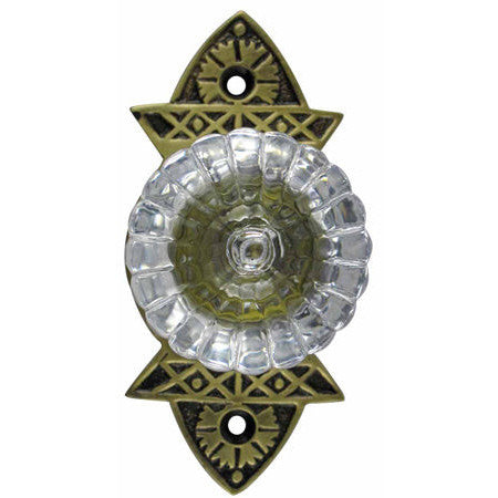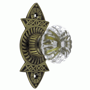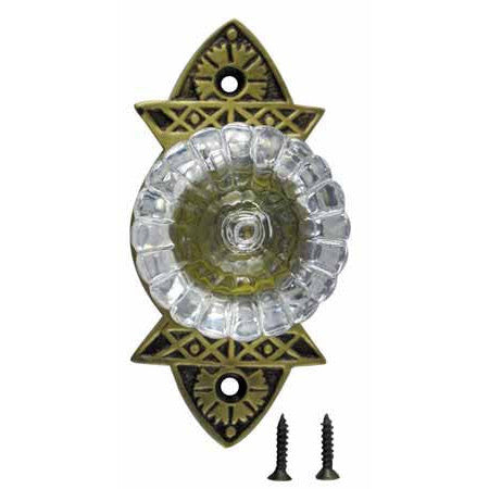 1 3/4 Inch Crystal Swirl Knob Eastlake Backplate (Antique Brass)