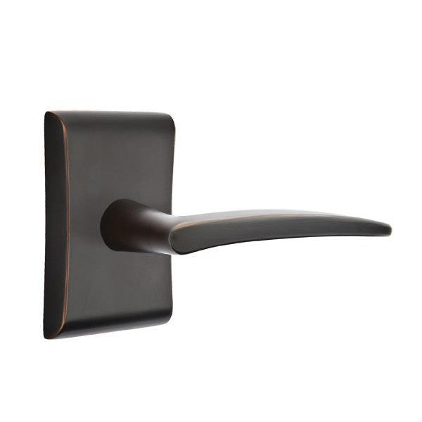 The Poseidon lever door knob shown here measures 5 inches in length by 2 1/2 inches wide with a 1 3/8 inch clearance. The neos rosette measures 2 5/8 inches wide by 4 inches in length. Includes the two levers and door rosettes. Functional sets also include the lever latch, face plate and strike plate. This set is made for modern doors and it fits any door thickness between 1 3/8 inch to 2 1/4 inches thick. Functional sets come with a 2 3/8 inch back set latch - and a 2 3/4 inch back set may be requested at no additional charge. This door lever set comes complete with mounting hardware. Handing is required for leversets. This particular product has a lead time of approximately 3 to 5 business days.