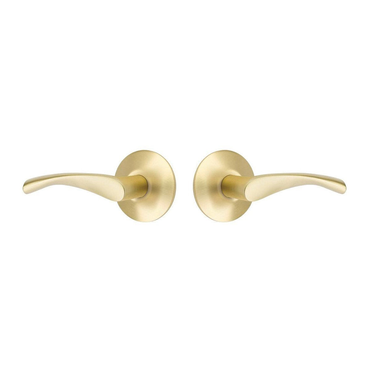 The Triton lever door knob shown here measures 4 3/4 inches in length with a 3 inch projection. The modern rosette measures 2 3/4 inches wide. Includes the two levers and door rosettes. Functional sets also include the lever latch, face plate and strike plate. This set is made for modern doors and it fits any door thickness between 1 3/8 inch to 2 1/4 inches thick. Functional sets come with a 2 3/8 inch back set latch - and a 2 3/4 inch back set may be requested at no additional charge. This door lever set comes complete with mounting hardware. Handing is required for leversets. Comes in a variety of finishes including Polished Brass, Satin Brass, Oil Rubbed Bronze, Flat Black, Polished Chrome, and Satin Nickel. The average lead time for this particular product is 3 to 5 Business Days.
