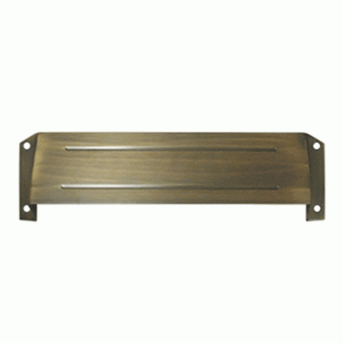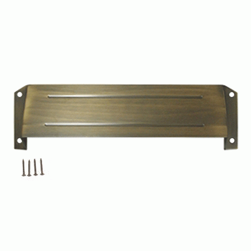 12 1/2 Inch Mail Slot & Sleeve Letter Box Hood (Antique Brass Finish) - measures 3 5/8 inches by 12 1/2 inches. This is a privacy accessory compatible with DTMS003, DTMS211, and DTMS212 mail slot models.