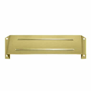 12 1/2 Inch Mail Slot & Sleeve Letter Box Hood (Polished Brass Finish) - measures 3 5/8 inches by 12 1/2 inches. This is a privacy accessory compatible with DTMS003, DTMS211, and DTMS212 mail slot models.