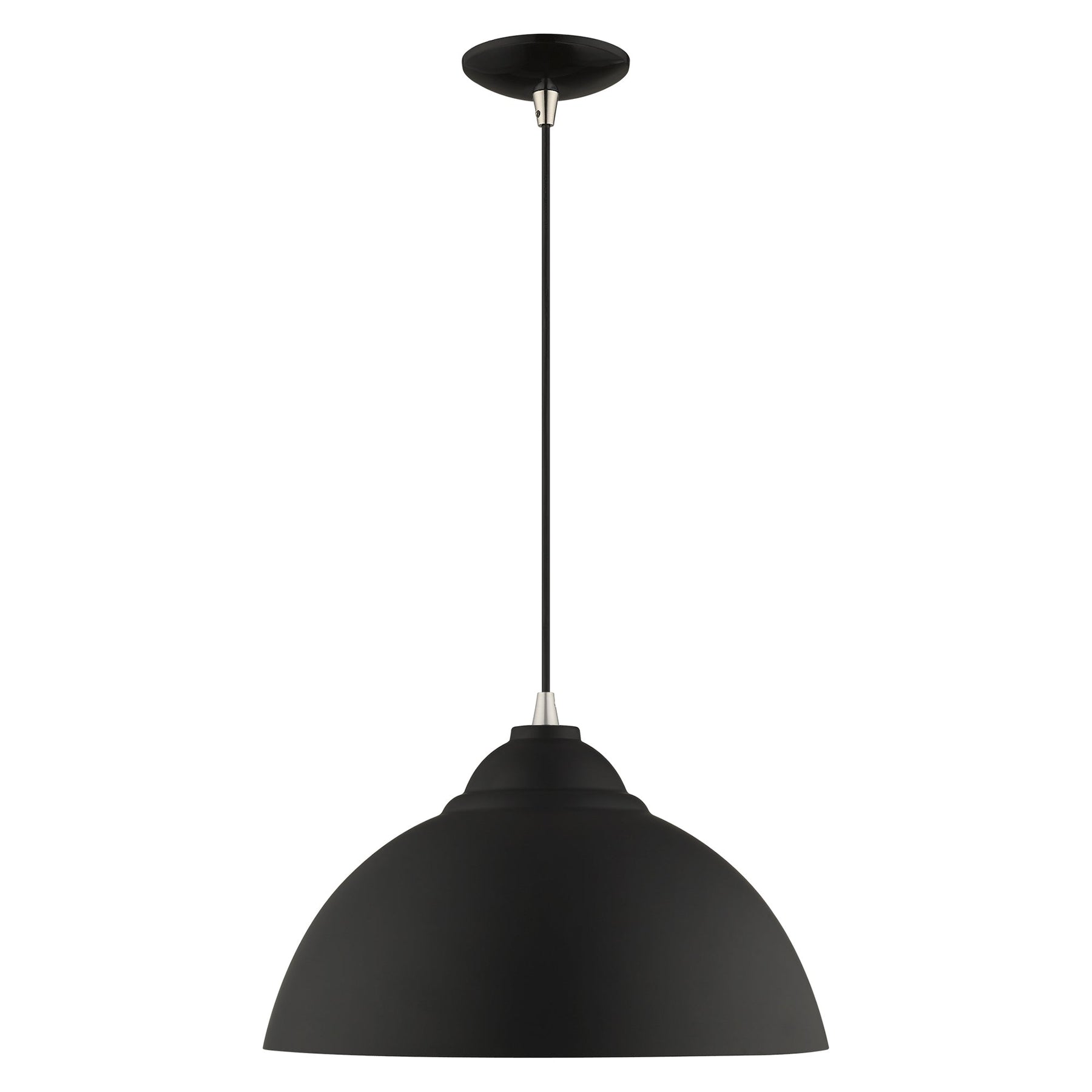 The 41180-04 Mini Pendant light features a striking black metal shade complemented by a gold finish inside, creating a beautiful contrast. This elegant fixture measures 15 inches in height, adjustable up to 75 inches, and has a diameter of 15.5 inches. Designed for a single medium base bulb (not included) with a maximum wattage of 60, it is perfect for urban-style decor. With a 6-foot wire and brushed nickel finish accents, it is suitable for damp locations, making it a versatile choice for various indoor spaces.