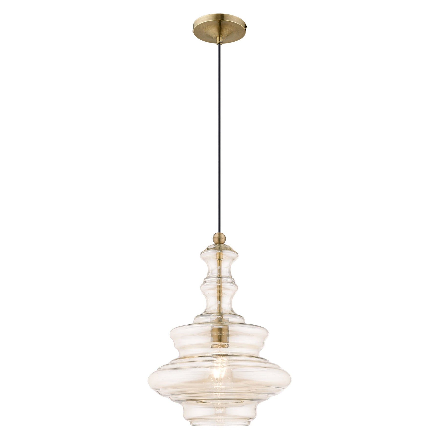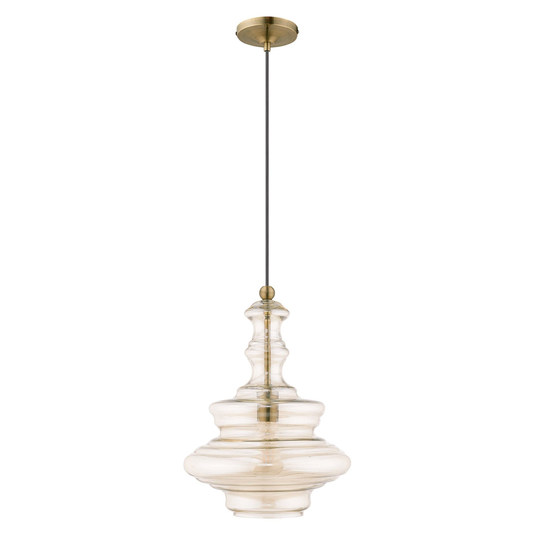 The 41224-01 Art Glass Mini Pendant is a stunning lighting fixture that seamlessly blends traditional charm with modern design. This mini pendant features a height adjustment range from 18.5 to 90 inches and a diameter of 12.25 inches, allowing for versatile installation options. Constructed with hand-blown champagne glass and finished in elegant antique brass, it requires one medium base bulb with a maximum wattage of 60W (not included). With an 8-foot wire length and its ability to accommodate sloped ceilings, this pendant is both stylish and functional, making it suitable for damp locations.