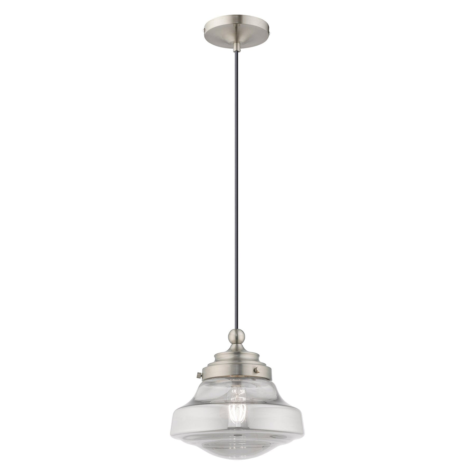 The 41242-91 Art Glass Mini Pendant is a stylish and modern lighting option that combines functionality with aesthetic appeal. This fixture features a curvy smoke glass shade suspended from brushed nickel details, making it a perfect addition to any transitional decor. With a height that adjusts from 11 inches to 90 inches and a diameter of 9 inches, it accommodates sloped ceilings and is suitable for damp locations. The pendant requires one medium base bulb (not included) with a maximum wattage of 60W, and comes with an 8-foot wire for flexible installation.
