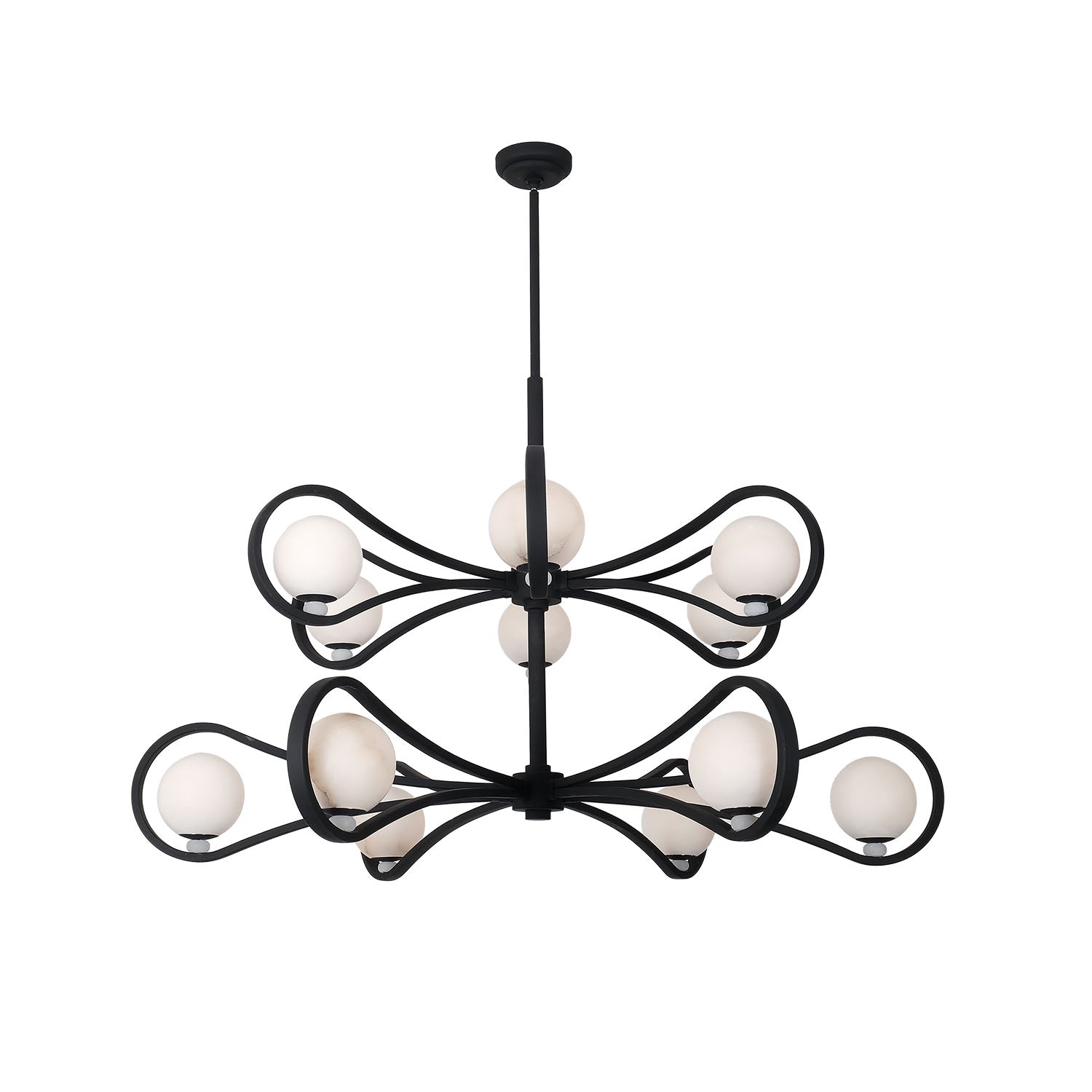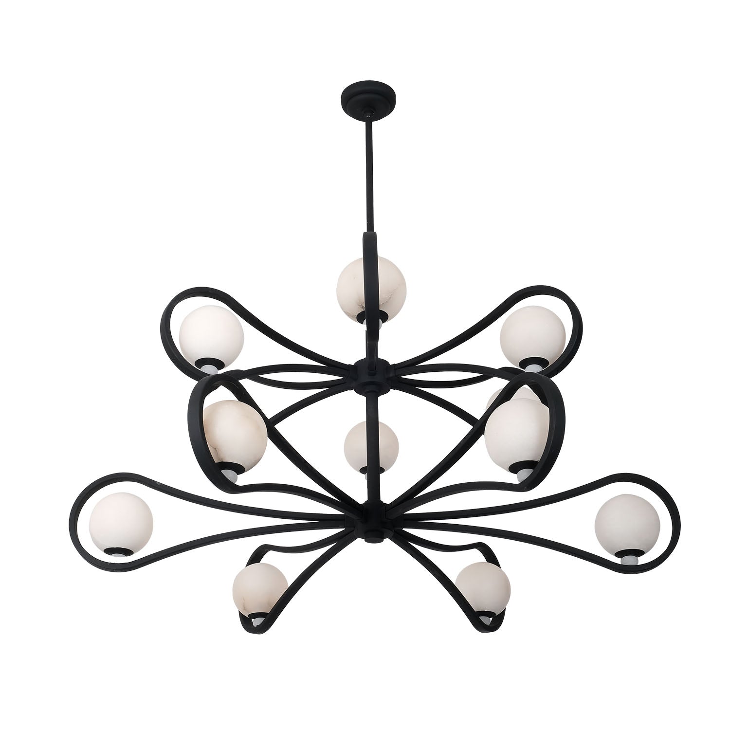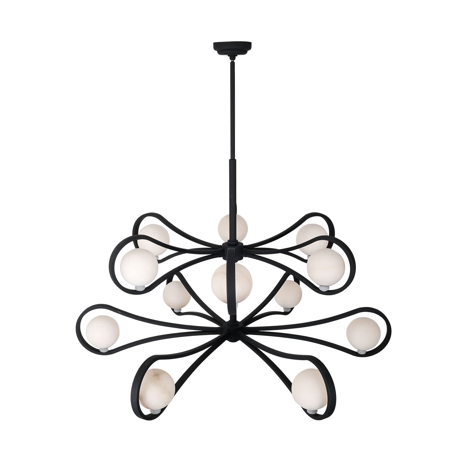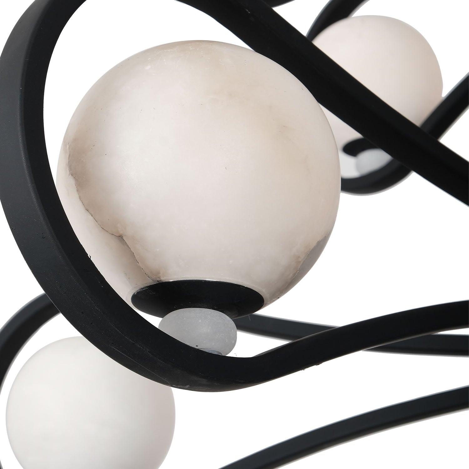 Explore the timeless elegance of Elliptical. Crafted with natural Alabaster stone and clean flowing lines. The balanced globes create a touch of intrigue. A Matte Black finish adds a dash of distinction with looping forms that naturally draw your eyes in. When lit, the balanced orbs cast a relaxed yet captivating glow.