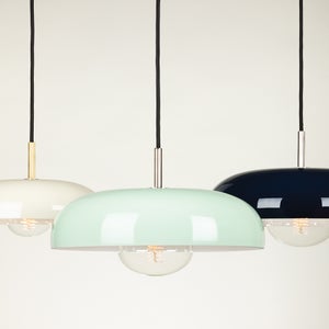 The Avery Table Lamp by Mitzi offers a chic and contemporary style, perfect for enhancing your living space. With a height of 13.75 inches and a width of 14 inches, this lamp features a durable steel shade available in a variety of elegant finishes, including Aged Brass with cream or pink options, and Polished Nickel with mint or navy colors. It accommodates one E26 medium base bulb (not included), with a maximum wattage of 60W, making it an excellent addition to any room. Please note that this lamp is not plug-in compatible and is rated for dry electrical environments.