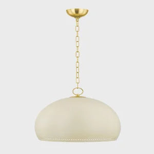The Etna Table Lamp by Mitzi offers a chic industrial charm with its metal shade finished in Aged Brass and Soft Cream. Measuring 17.75 inches in width and 15.25 inches in height, this lamp is designed to accommodate one E26 medium base bulb (recommended G40, not included) with a maximum wattage of 25W. Ideal for various settings, it meets UL Damp electrical ratings, ensuring safe use in humid environments.
