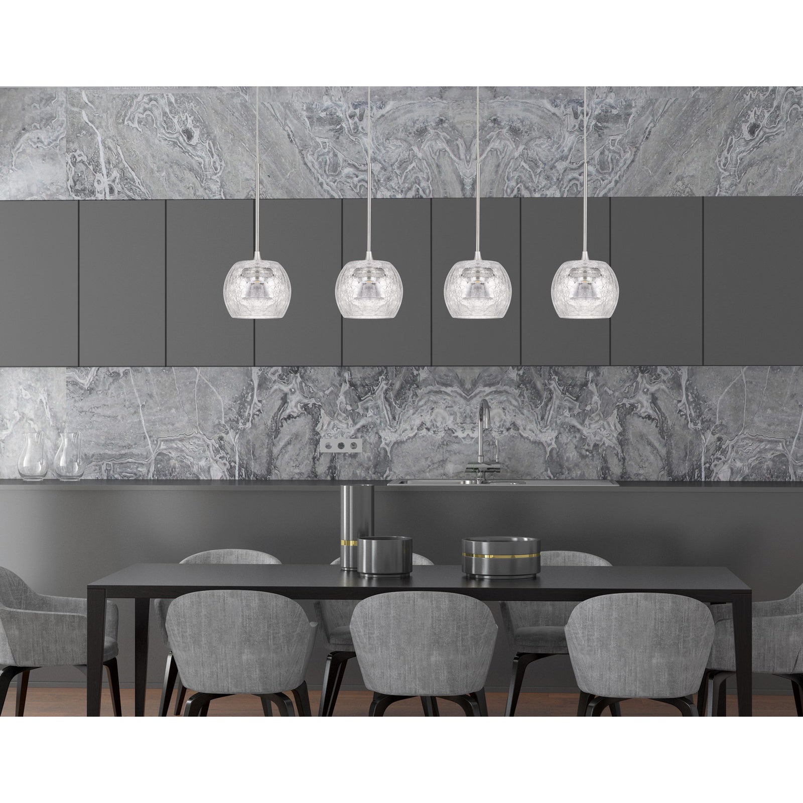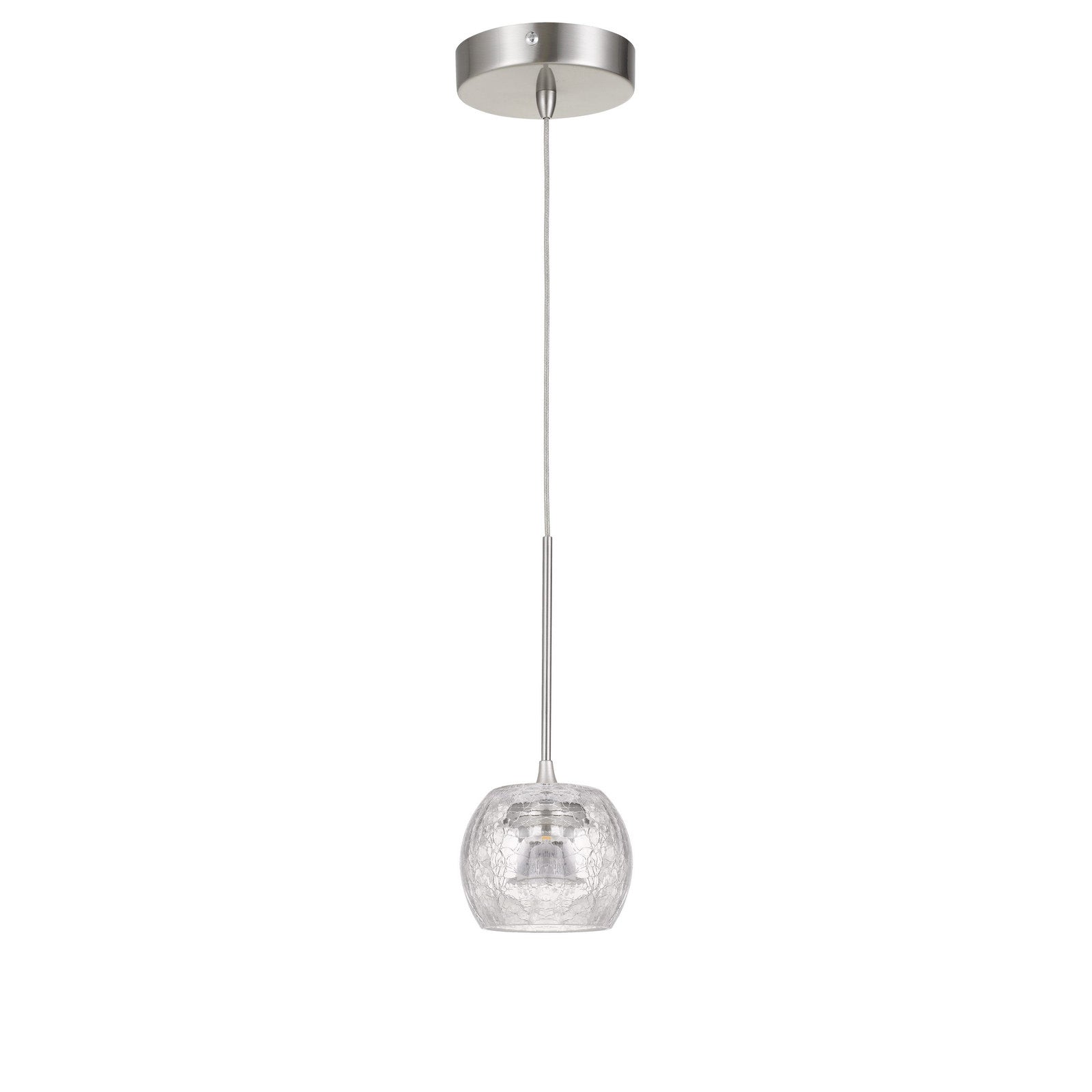 ITHACA 3000K, 8W, 700 LUMEN, 90 CRI DIMMABLE LED GLASS MINI PENDANT WITH CLEAR CRACKLE GLASS
