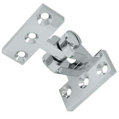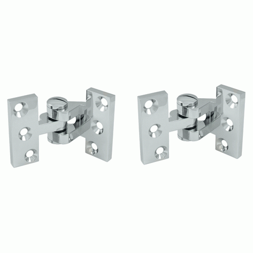 Solid Brass Intermediate Pivot Hinge (Chrome Finish) - Sold in Pairs - Measures 2 1/2 tall by 3 3/4 inches wide. Works as complement of the pivot hinges for large doors. Comes complete with mounting hardware.