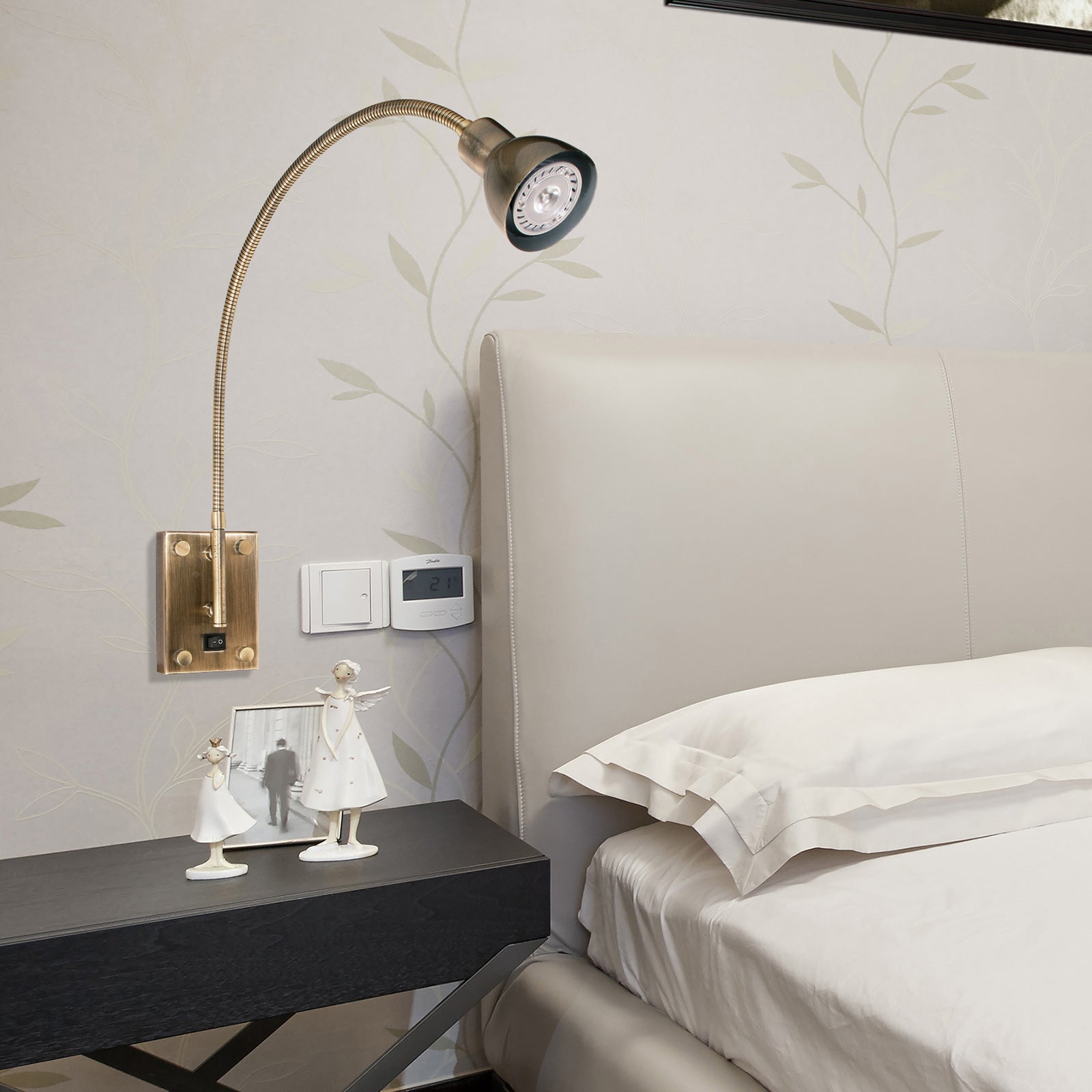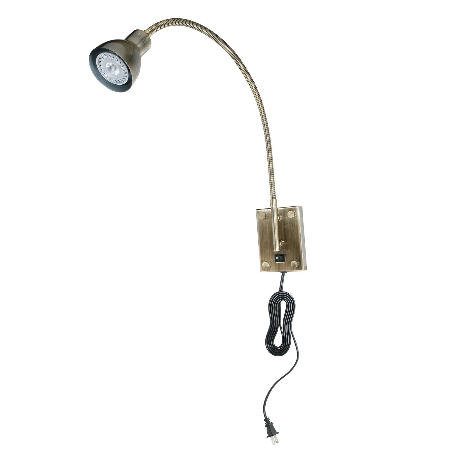 The BO-119-AB 120V, 3W 4000K LED Gooseneck Light is a versatile and stylish lighting solution ideal for various settings. It features a durable metal construction in an antique brass finish and includes an LED light bulb, providing efficient illumination. The flexible gooseneck design allows for optimal control and direction of light, while the driver is conveniently located on the cord. With a height of 2.62 inches, this plug-in wall-mounted lamp emits a 4000 Kelvin temperature glow, delivering 450 lumens with a CRI of 80. Assembly is required, and the product comes with a one-year warranty, ensuring long-lasting quality.