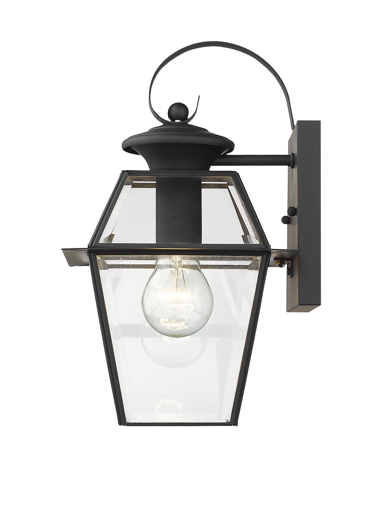 The 2181-04 Westover Wall Lantern is a stunning addition for those who appreciate classic elegance in outdoor lighting. Handcrafted from solid brass, it features one medium base bulb (not included) with a maximum wattage of 100W and is designed to illuminate through large panes of clear beveled glass. Measuring 7 inches in width, 12.5 inches in height, and an extension of 7.5 inches, this traditional-style fixture is both visually appealing and practical. Rated for damp and wet locations, it is perfect for enhancing the charm of outdoor spaces reminiscent of historic gas-burning lamps.