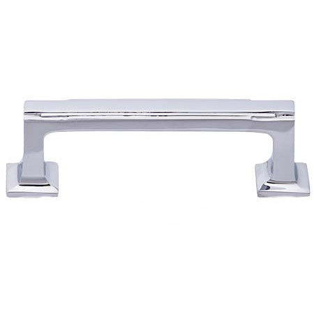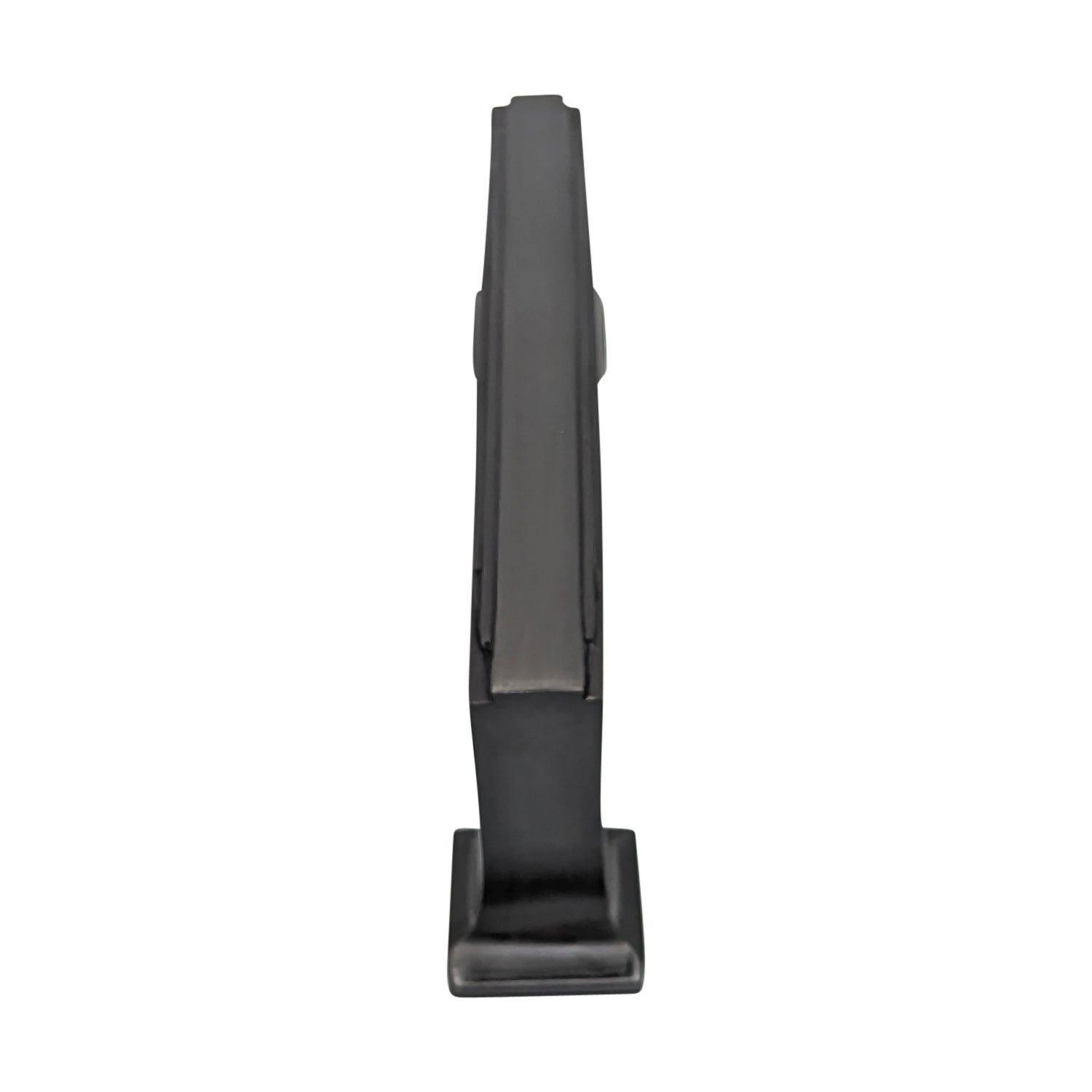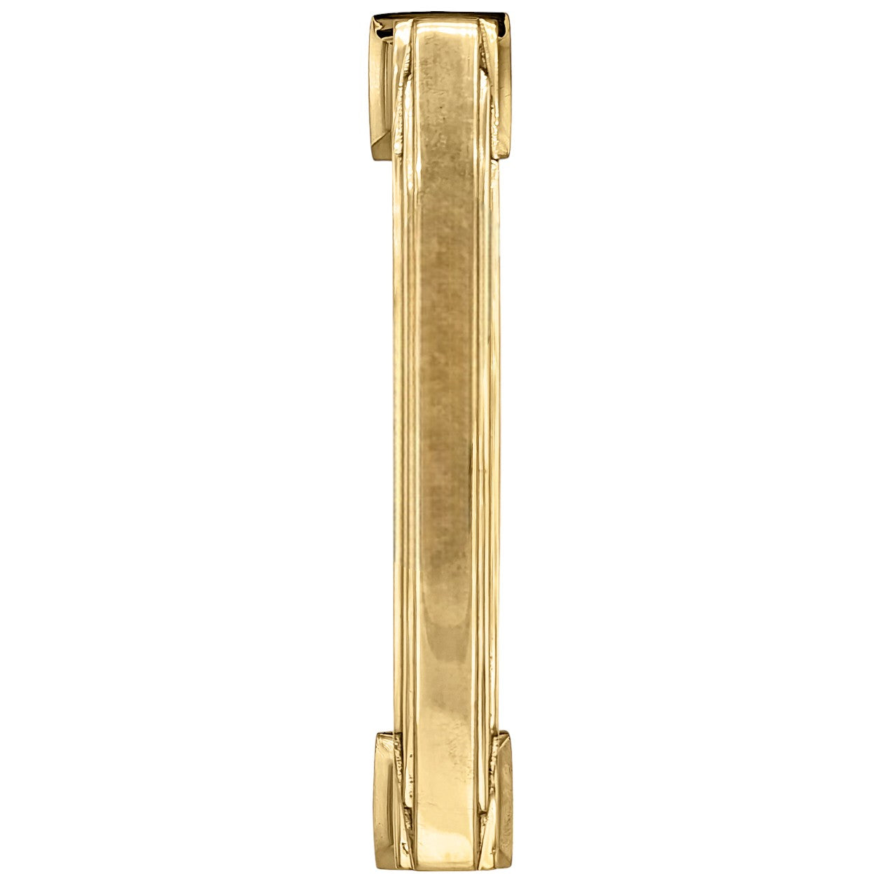 This pull is constructed from solid brass and finished by hand. The Art Deco Lined Pull measures 7 inches wide by 1 1/8 inch tall. The pull has a projection of 2 1/4 inch and a center-to-center mounting distance of 5 3/4 inch. This mounts with two machine screws from behind (included). Made from solid brass for decades of dependable service.