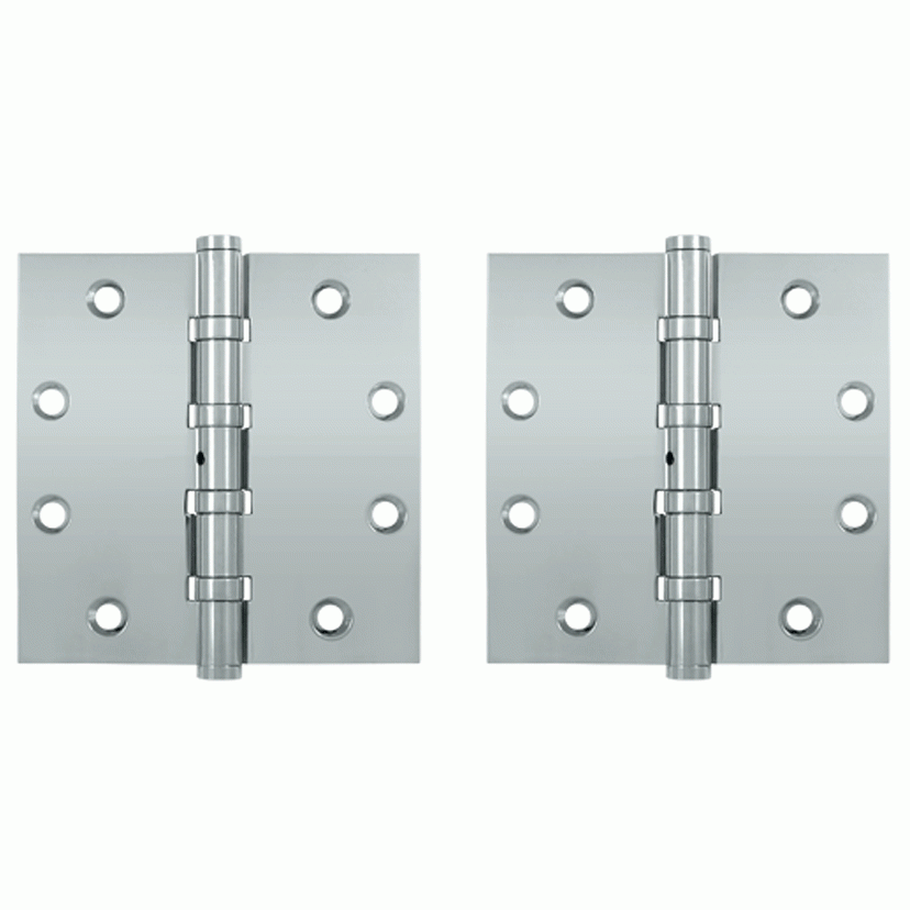 4 1/2 Inch X 4 1/2 Inch Solid Brass Non-Removable Pin Square Hinge (Chrome Finish)