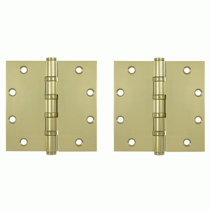 5 Inch X 5 Inch Solid Brass Four Ball Bearing Square Hinge (Unlacquered Brass Finish)