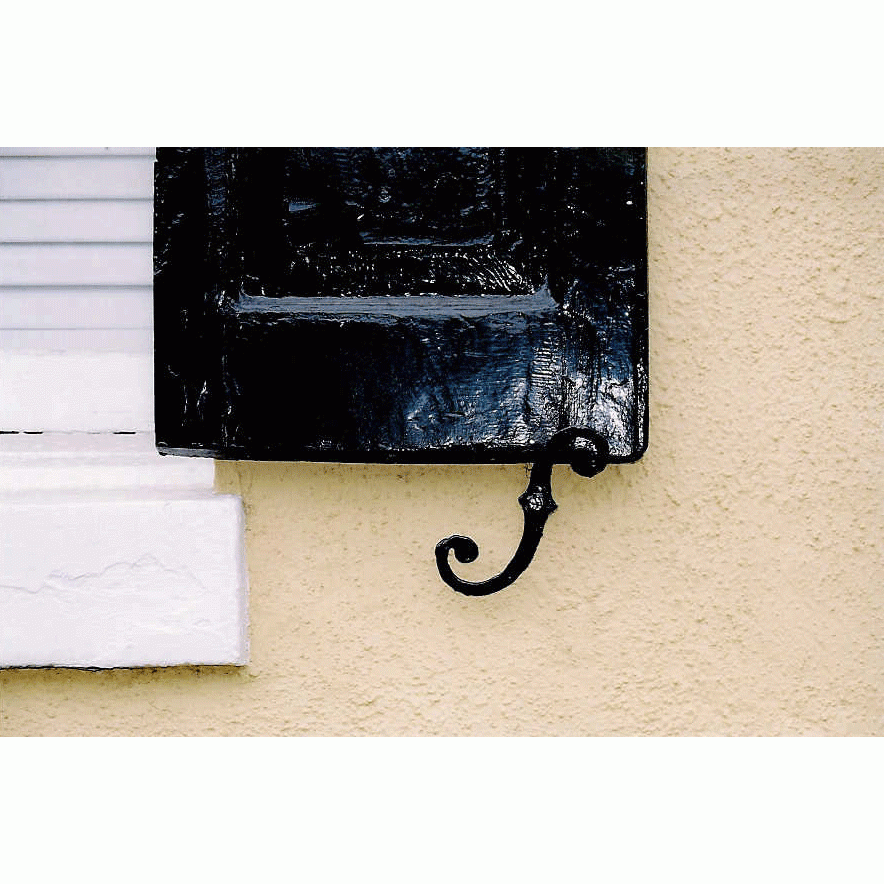 Pair 6 3/4 Inch by 2 3/8 Inch Shutter Dogs - measures 6 3/4 Inch by 2 3/8 inches. These are reversible (not handed) and anti-rattle hooks are supplied. These are for brick and wood applications and come complete with the mounting hardware.