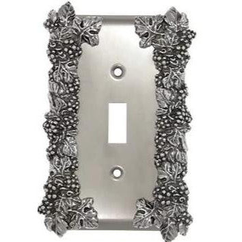 Grapes & Floral Wall Plate (Bright Nickel Finish) - single pole design (available in 12 other configurations). Hand finished in the USA. Comes complete with mounting hardware.