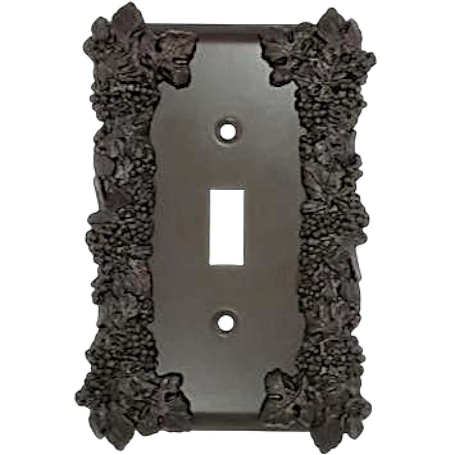 Grapes & Floral Wall Plate (Oil Rubbed Bronze Finish) - single pole design (available in 12 other configurations). Hand finished in the USA. Comes complete with mounting hardware.