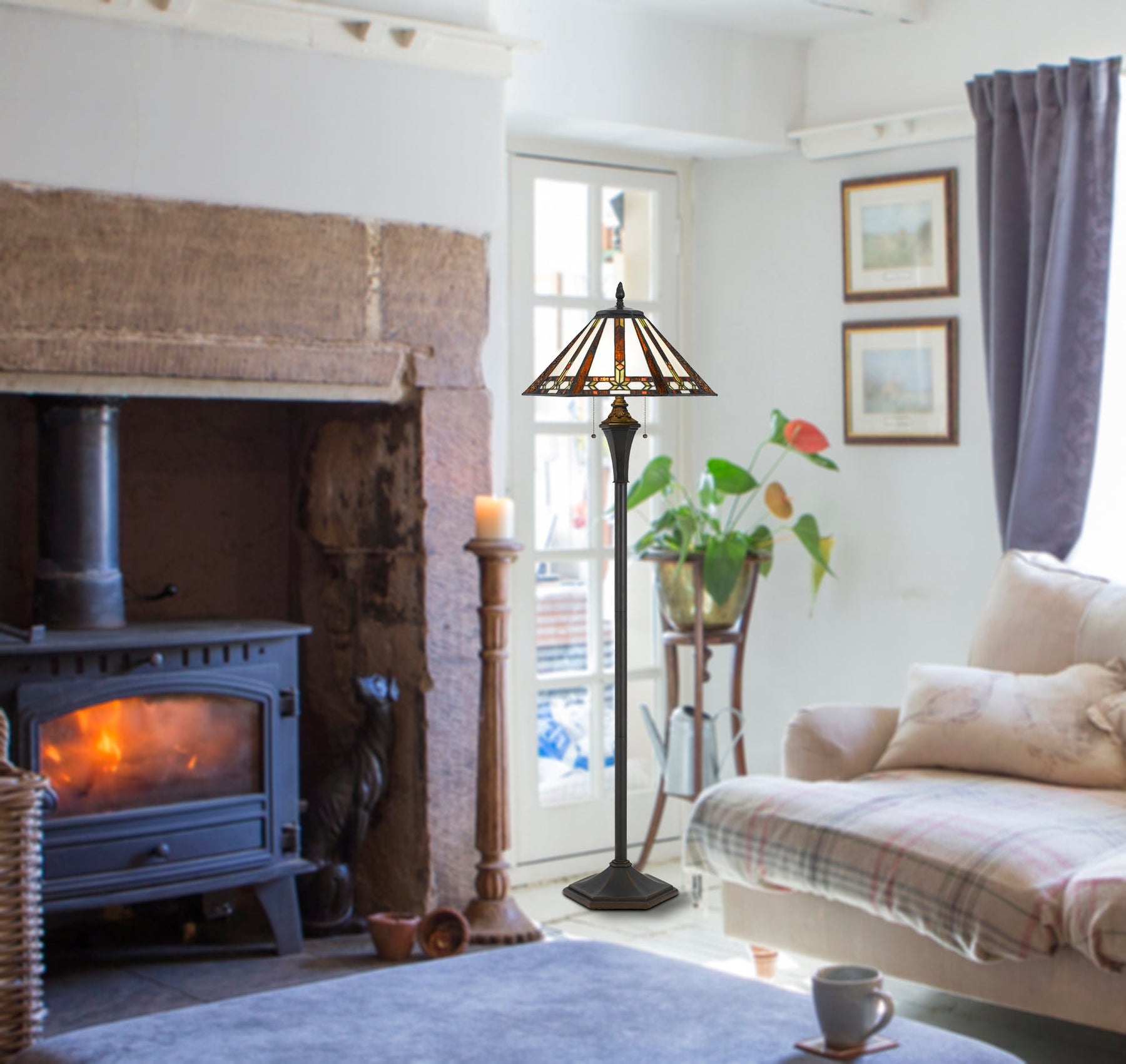 The BO-2717FL 60W X 2 Tiffany Floor Lamp is a stunning addition to any room, featuring a durable resin construction that ensures longevity. This lamp is designed with a functional double pull chain for easy operation and includes a colorful stained glass Tiffany shade that adds a unique touch to your decor. With two lights, each capable of 60W, this lamp offers a vibrant lighting solution with a convenient on/off switch. Packaged in one carton, it requires assembly and typically ships within 3 business days. Covered by a one-year warranty against defects, this lamp combines style and functionality perfectly.