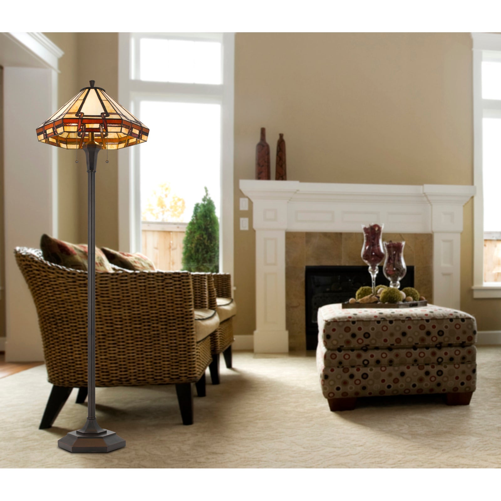 The BO-3016FL Tiffany Table Lamp is a stunning addition to any room, combining elegance and functionality. Featuring a metal and resin lamp body with a pull chain switch, this lamp supports two 60W bulbs (not included) and comes with a beautiful Tiffany glass shade featuring art color design. The Mission style geometric pattern adds a touch of classic charm, complemented by a heavy weighted base for stability. With dual pull chain switches for convenience and a matching finial, this lamp not only brings a splash of color to your decor but also serves as a delightful focal point. It is easy to assemble and comes with a one-year warranty against defects.