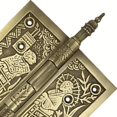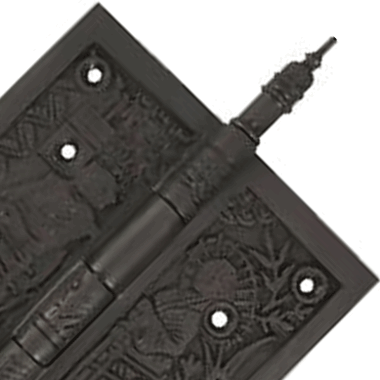 Measure 4 1/2 inches by 4 1/2 inches. Marked on back of each No. 17, Pat Jan 13 1880 with the size. Ornate styling on both sides. The finials and pins are removeable. Made with the lost-wax casting process, sometimes known by the French name of cire perdue is an ancient practice that is still used for artwork today and it is used to preserve the fine details of the original door components. Available in polished brass, antique brass, and Black Bronze. This component is made from solid unlaquered brass which will patina naturally over time. These hinges are sold in pairs. This particular product has an average lead time of approximately 2 to 4 business days.