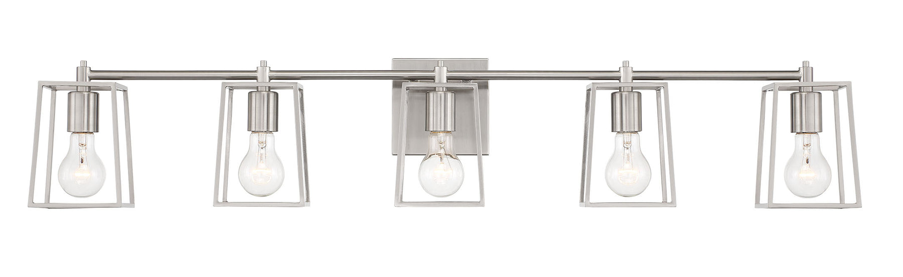 The Dunn 5 Light Vanity in Brushed Polished Nickel is the perfect blend of transitional design and practical functionality. This stylish vanity fixture requires five medium base A19 bulbs with a maximum wattage of 60W (not included) and features a robust damp rating, making it ideal for bathrooms and other humid environments. Measuring 40.88 inches in both width and depth, with a height of 7.88 inches and an extension of 5.87 inches, it provides ample illumination while adding an elegant touch to any decor. The included one-year limited warranty ensures peace of mind, while the cETLus safety rating guarantees reliability.