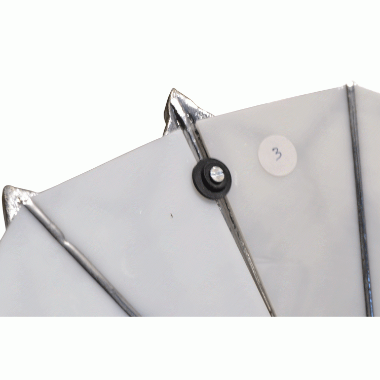 This uses five bulbs (maximum of 50 Watts each) and this fixture comes complete with the mounting hardware. Each chandelier has seven custom made stained glass panels and the stained glass comes in Shadeless, Pink Champagne (shown), Amber and Deco Green. Matching chandelier and wall sconce available. Each of these items are made to order - and require the associated lead time before shipping.