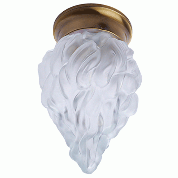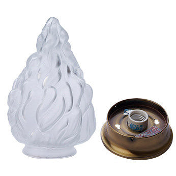 Glass Flame Light Fixture (Antique Brass Finish) - This light fixture includes the glass flame shaped shade and the polished brass base. Glass shade measures 10 inch tall by 6 1/2 inch wide. Solid brass base measures 1 5/8 inch tall by 5 inch in diameter. This fixture comes pre-wired and ready to install. U.L. approved and this comes with the crossbar, wire nuts, thumb screws and includes high heat porcelain socket. This fixture accepts one (1) standard bulb 60 Watt maximum. This fixture uses a 4 inch fitter shade (included as shown) and has a maximum ceiling cover of 5 inches in diameter.