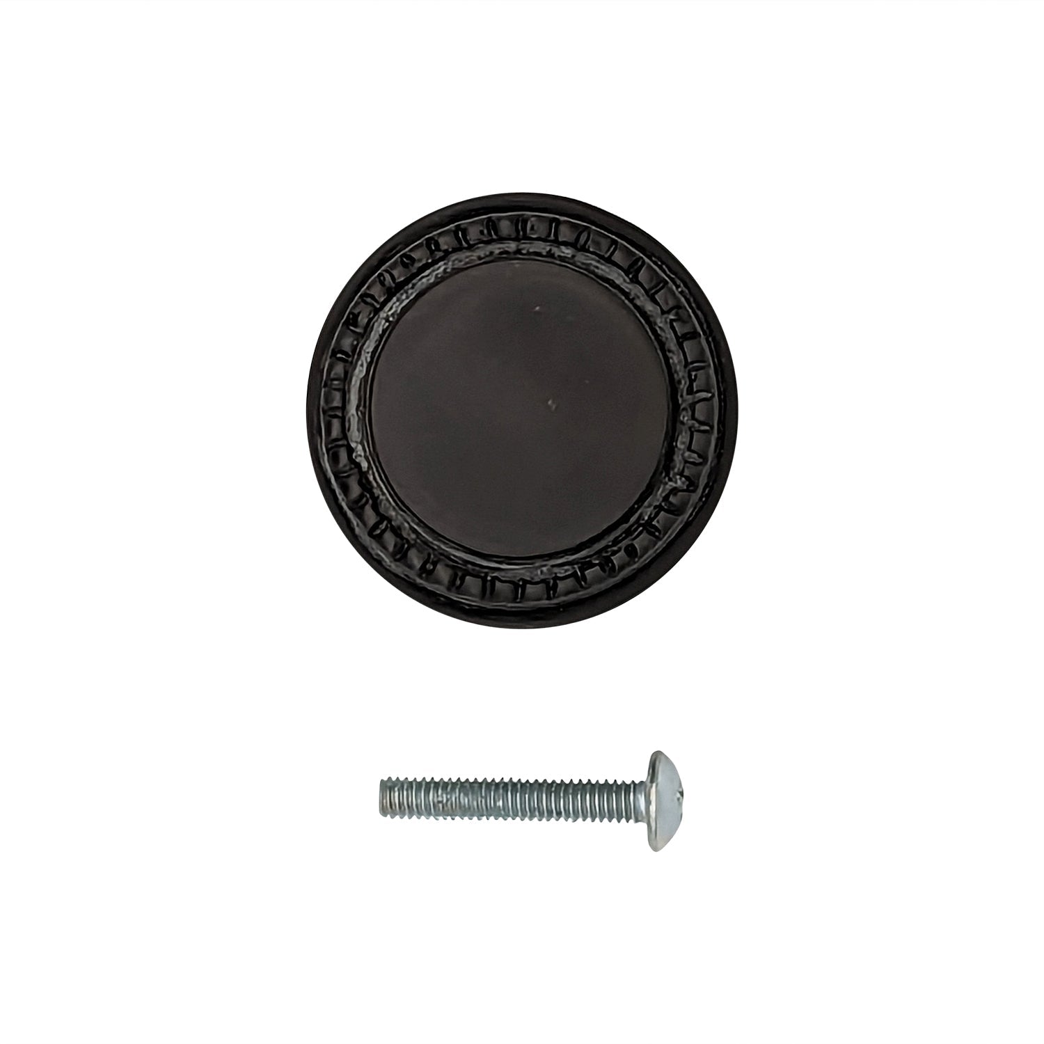 This solid brass knob features a beaded pattern and has an approximate 1 1/2 inch diameter with a 1 inch projection. It comes complete with all mounting hardware and is available in several sizes.