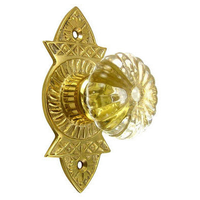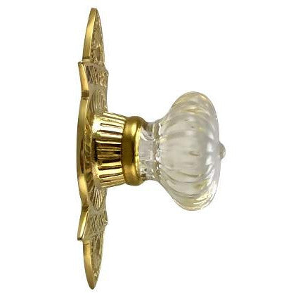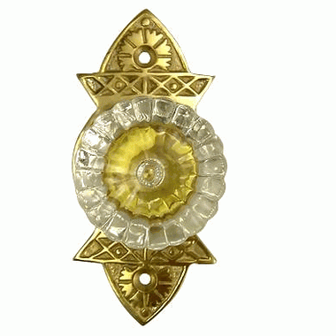 1 3/4 Inch Crystal Swirl Knob Eastlake Backplate (Polished Brass Finish)