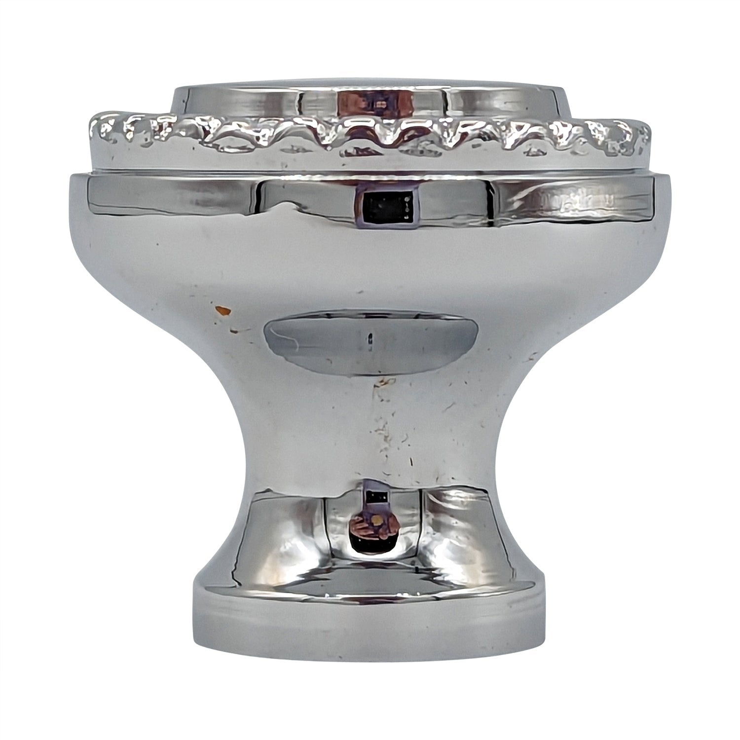 This cabinet knob measures 1 inch in diameter with a projection of 1 inch. We carry this style in several sizes and all come complete with mounting hardware.