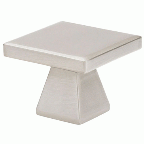 1 1/4 Inch Solid Brass Podium Knob (Brushed Nickel Finish) - This cabinet knob features a sleek design and is forged from solid brass. Measures 1 1/4 inches in diameter with a 1 1/8 inch projection. Comes complete with mounting hardware.