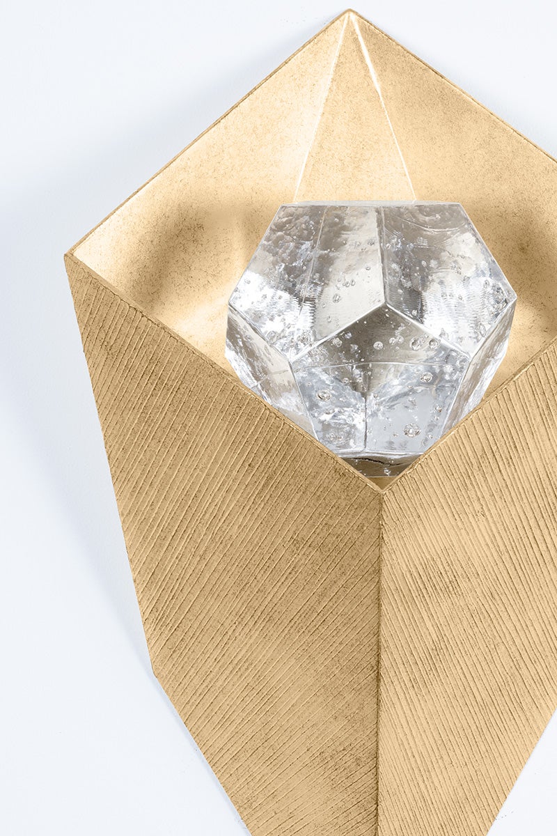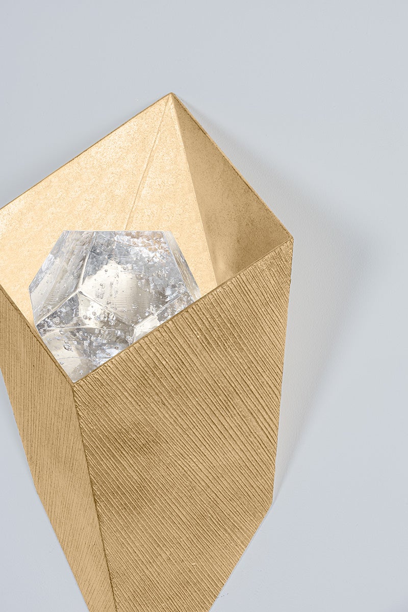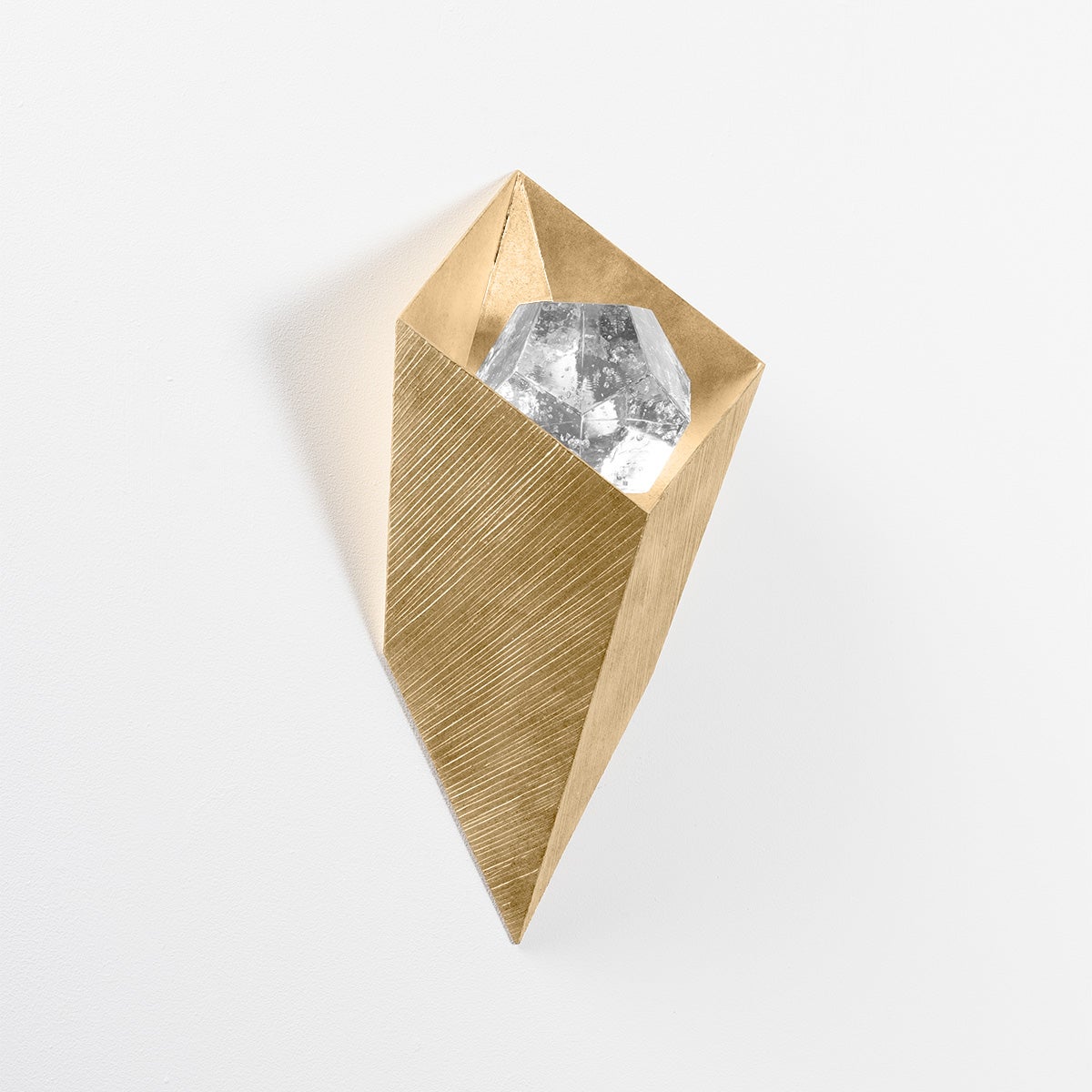 The Conch Wall Sconce by Corbett Lighting is a stunning addition to any space, featuring a gorgeous crystal shade that beautifully diffuses light. It measures 10.00 inches in width and 17.25 inches in height, with a 5.00-inch extension, making it an eye-catching fixture. This sconce is equipped with an integrated LED socket type, offering a powerful wattage of 9.00 and a luminous output of 200 lumens, all while achieving a color temperature of 2700K with a high CRI of 90. Its elegant Vintage Gold Leaf finish enhances its luxurious appeal, making it suitable for various settings. Please note that this fixture is not field serviceable and is not designed for plug-in use.