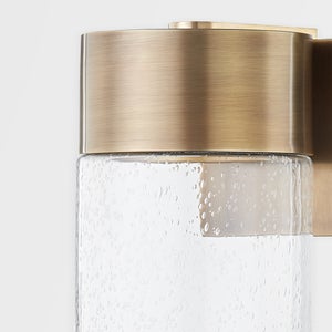 The Troy Lighting Pristine Wall Sconce boasts a stunning design with a clear seeded glass shade that beautifully diffuses light. Measuring 5.25 inches in width and 12.75 inches in height, this sconce features an extension of 6.00 inches and a top-to-center height of 3.75 inches. It operates on a single GU10 socket and can accommodate a maximum wattage of 8.00W. The fixture is finished in elegant Patina Brass, adding a touch of sophistication to any space. Additionally, it is UL Wet rated, making it suitable for both indoor and outdoor use.