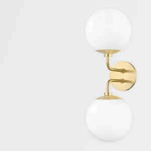 The Stella Wall Sconce by Mitzi offers a chic and modern lighting solution for any space. With dimensions of 7.00 inches in width and 20.00 inches in height, this sconce is perfect for highlighting your decor. It features an elegant glass shade and accommodates two E26 medium base bulbs with a maximum wattage of 60W each. The sconce extends 8.25 inches from the wall and has a top-to-center height of 10.00 inches. Available in a variety of finish options, including Aged Brass, Old Bronze, and Polished Nickel, it adds a touch of sophistication to both contemporary and classic interiors. UL Damp rated, this fixture is suitable for use in humid environments.