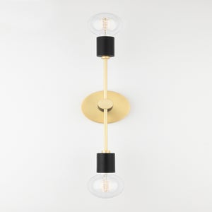 The Astrid Wall Sconce by Mitzi combines elegant design with practicality, featuring a width of 4.75 inches and a height of 18 inches. This stylish fixture requires two E26 medium base bulbs (not included), with a maximum wattage of 60W each. It offers an extension of 5.00 inches and has a top-to-center measurement of 9.00 inches, making it ideal for a variety of spaces. Available in sophisticated finish options of Aged Brass/black and Polished Nickel/black, this wall sconce is UL Damp rated, ensuring its suitability for bathrooms and other humid environments.