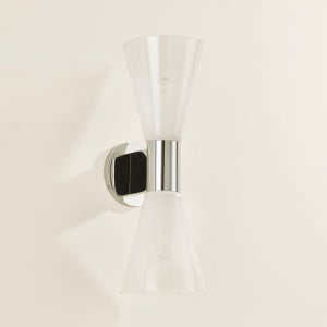 The ALMA Wall Sconce by Mitzi offers a blend of modern design and practical functionality. Featuring a sleek glass shade with an overall height of 17.50 inches and a width/diameter of 6.00 inches, this sconce is perfect for illuminating your space with two E26 medium base bulbs, each supporting a maximum wattage of 15W (not included). The fixture extends 7.00 inches from the wall, providing a striking profile, while the shade is positioned 8.75 inches from the top to the center. The sconce is available in elegant finish options of Aged Brass or Polished Nickel, and is UL Damp rated, making it suitable for various indoor environments.