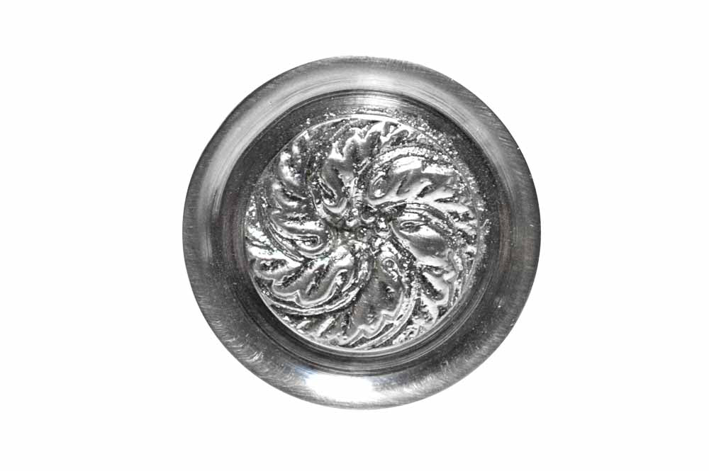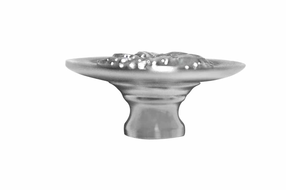 This knob measures 1 1/3 inches in diameter with a projection of 1 1/4 inch. Comes complete with mounting hardware. Available in an elegant Satin Nickel finish. The average lead time for this cabinet knob is approximately 1 to 2 business days.