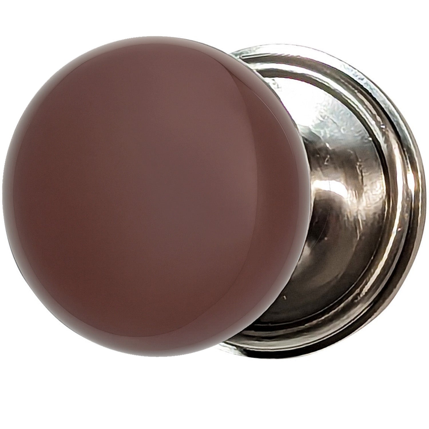 Authentic 2 ⅓" diameter porcelain knob with warm brown finish